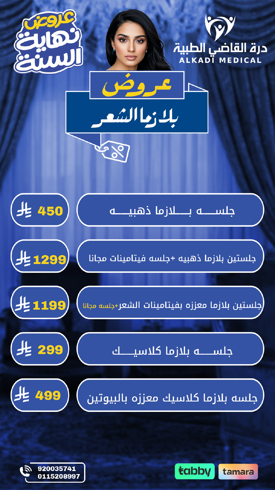 عروض بلازما الشعر تعتمد على تقنية طبية تهدف إلى تحسين صحة فروة الرأس ودعم قوة وكثافة الشعر. تساعد الجلسات على تنشيط بصيلات الشعر وتقليل التساقط وتحسين مظهر الشعر العام، باستخدام مكونات مستخلصة من الجسم نفسه وتحت إشراف مختصين، لضمان إجراء آمن ونتائج طبيعية.